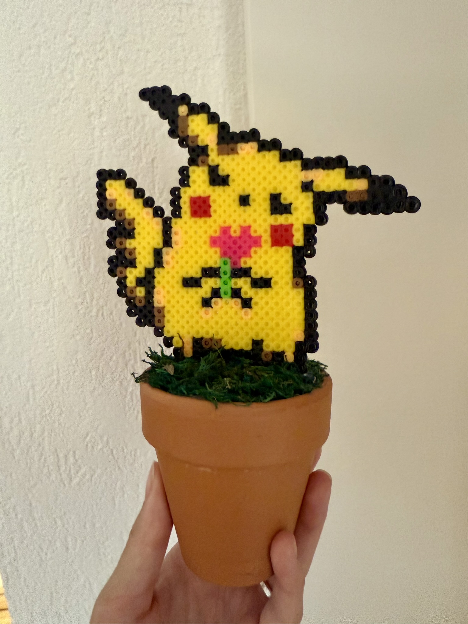 Fait à la main, il apporte un peu de douceur dans ce monde de brutes. Que vous soyez fan de Pokémon, amateur de déco originale ou juste à la recherche d’un objet qui donne le sourire, ce petit Pikachu est prêt à illuminer vos journées.